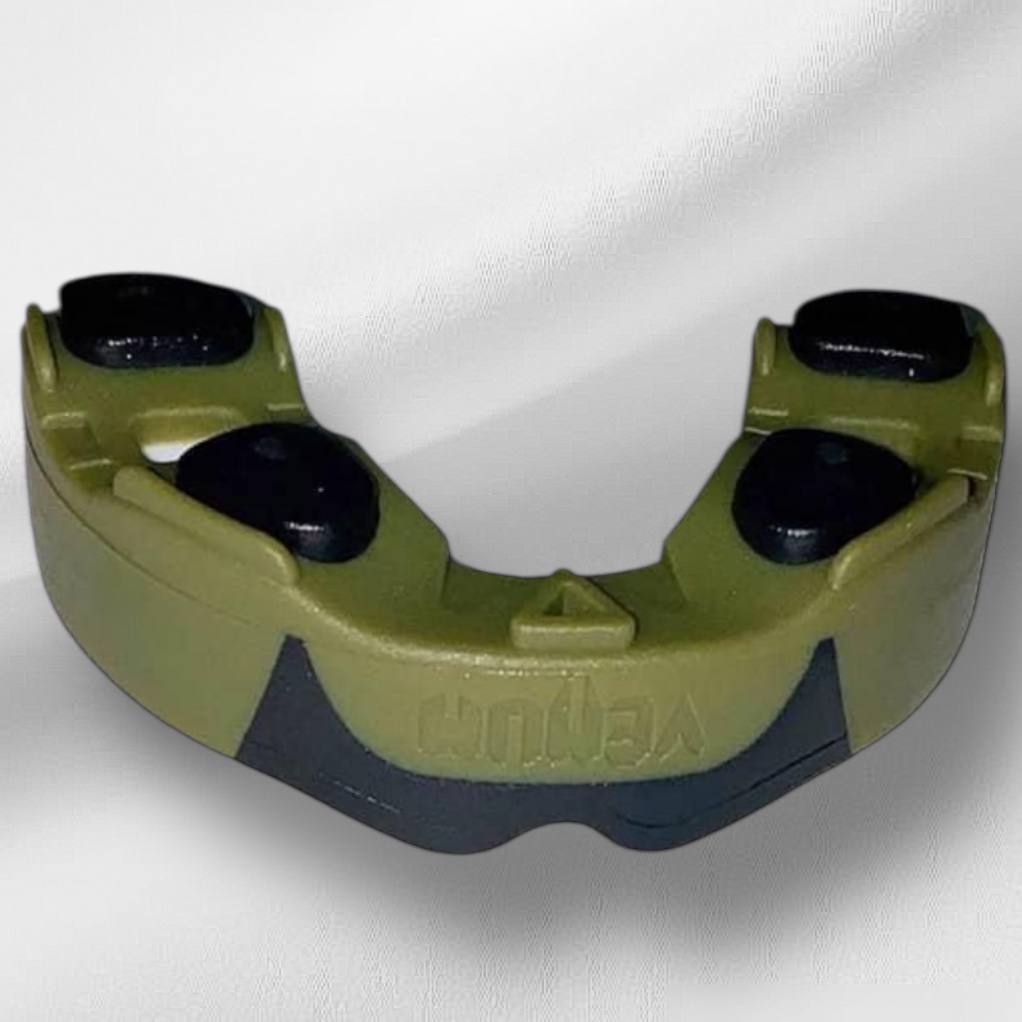 محافظ دندان یکی دیگر از تجهیزات رزمی می باشد که فرد مبارز در زمان تمرین های مبارزه ای یا مسابقات باید از آن استفاده کند. دندان ها یکی از بخش های آسیب پذیر در مسابقات هستند زیرا ضربات به صورت در ورزش های رزمی بسیار است. بنابراین وجود یک لثه مناسب و مقاوم برای فرد ضروری است. دندان ها در ورزش های رزمی به دو شکل احتمال آسیب دیدگی دارند یا در اثر ضربه مستقیم و یا در اثر برخورد دندان های ردیف بالا و پایین با یکدیگر که بیشتر شکستگی ها ناشی از برخورد دندان های دو ردیف با هم می باشند. امروزه لثه محافظ بر روی فک بالایی قرار می گیرد تا در زمان ضربات یا فشار دو فک بر روی یکدیگر آسیب جدی به آن ها وارد نگردد و تنفس نیز راحت باشد. توجه داشته باشید برای استفاده از لثه مخصوص باید ابتدا آب را به جوش آورده و منبع حرارتی را خاموش کنید سپس لثه را به مدت 5 ثانیه به صورت کامل در آب جوش قرار دهید و لثه را از آب جوش درآورده و 30 ثانیه در فک بالا قرار داده و دهان خود را ببندید و به آن با دندانها فشار وارد کنید و بعد از آن لثه آماده استفاده می باشد اما توجه داشته باشید اگر به هر دلیلی احساس کردید لثه در فک شما گشاد است و یا دهان شما را اذیت می کند، لثه را دور نیاندازید. کافی است مراحل اولیه را مجددا تکرار نمایید. لثه آب جوشی ونوم دارای دو لایه ژلاتینی می باشد که قابلیت دیگر آن آنتی شوک است. برای آقایان و بانوان مناسب و رده سنی آن از 12 سال به بالا می باشد.